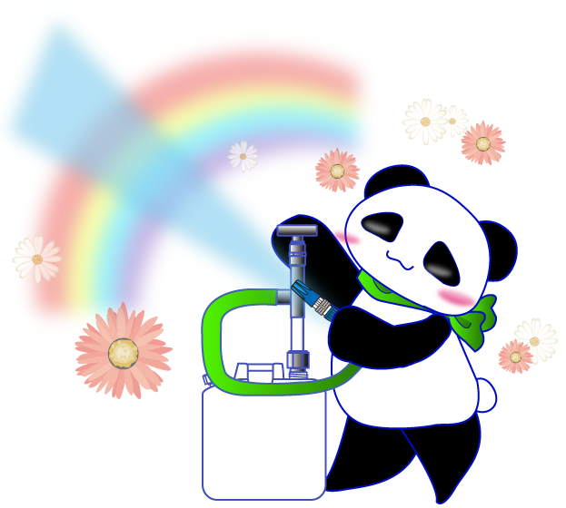 「魔法のエコちゃん」を 利用して 楽しく雨水活用・・・雨水活用でも雨水屋ノーマの手押し散水ポンプが大活躍。